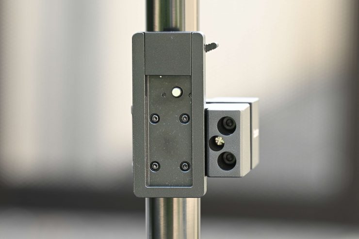 It utilizes a nice, quick-release mechanism, and I like that Aputure has put two mounting plates on the power supply/controller.