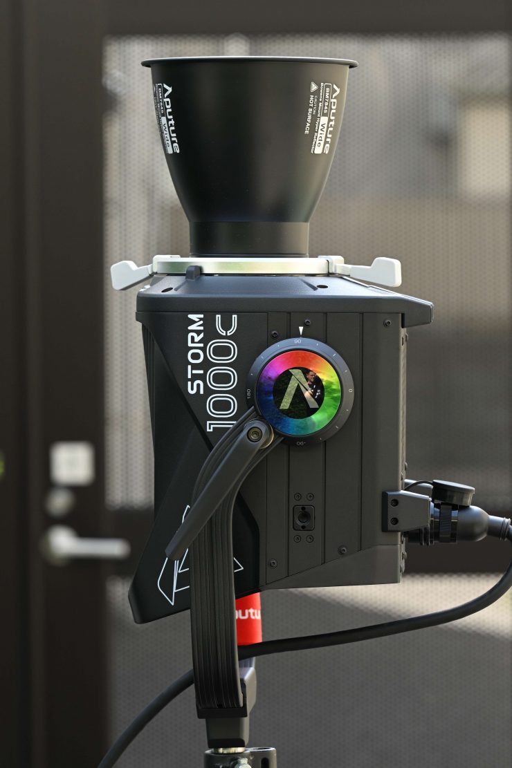 Aputure’s new STORM 1000c was unveiled along with STORM 80c, expanding its STORM family of point source lights. These tunable color lights feature the new BLAIR-CG light engine (Blue/Lime/Amber/Indigo/Red/Cyan/Green), offering a claimed color spectrum greater than any other professional LED fixture currently available.