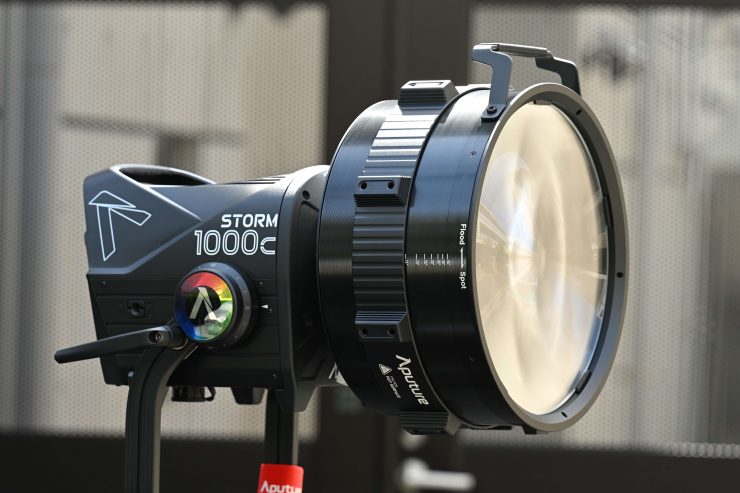 The STORM 1000c will work with all the existing Aputure softboxes, lanterns, and third-party lighting modifiers. Now, I did find it slightly odd that the F10 Fresnel is listed because it doesn’t physically fit on the STORM 1000c. You ned to use the new CF12 Fresnel.