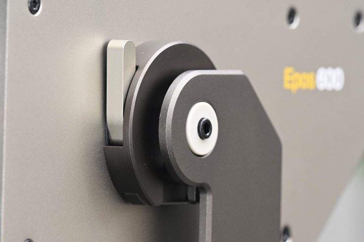 The Kelvin Epos 600 features a beautifully made and easy to use quick release locking mechanism that allows you to quickly separate the light head from the yoke frame.