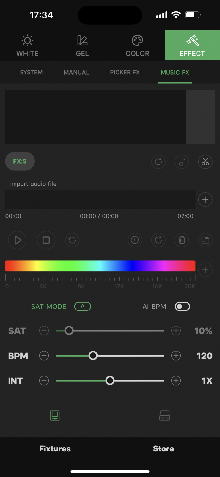 Aputure STORM 80c set @3200K, camera set at 3200K