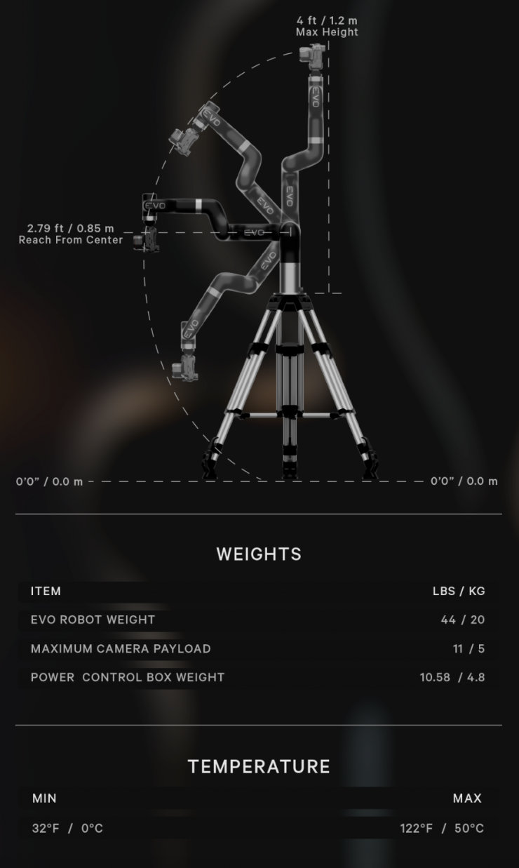 EVO is the latest addition to its line of cinebots, and it was designed to give content creators, filmmakers, and production teams access to cutting-edge motion control technology.