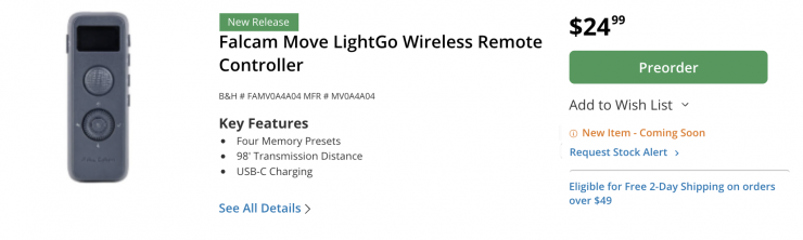 The Falcam Move LightGo is now available to purchase for $249 USD.