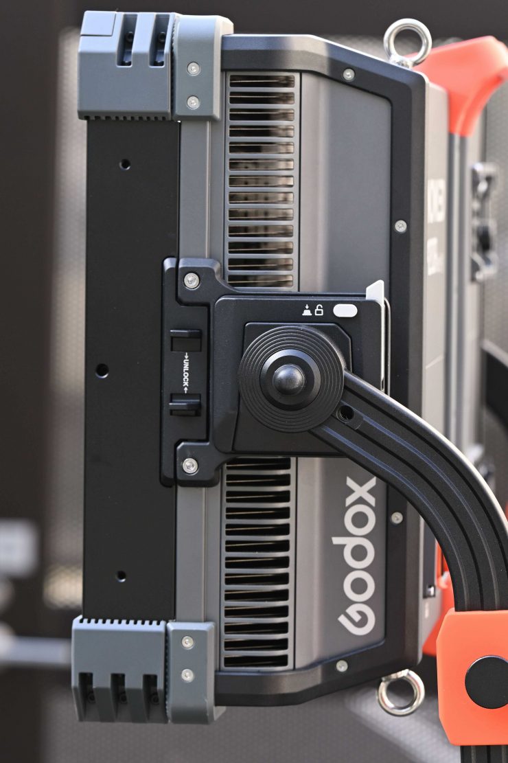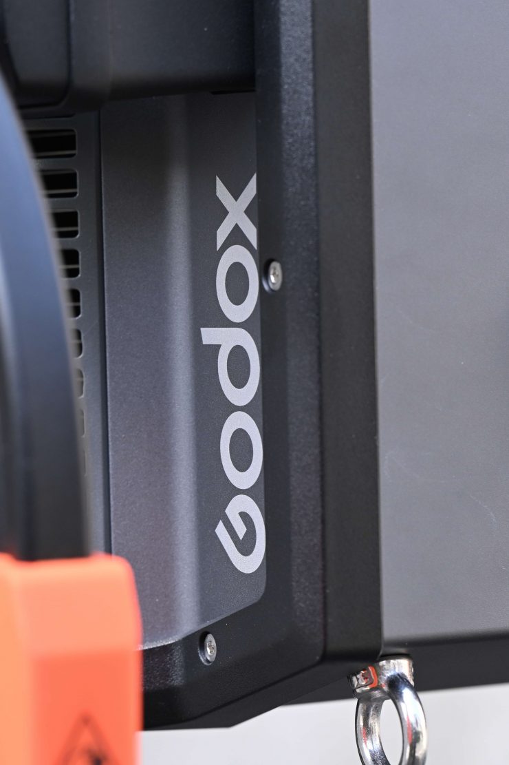 Godox has also placed metal hooks on the unit which is handy if you need to hang it up high or secure it to overhead grids, etc.